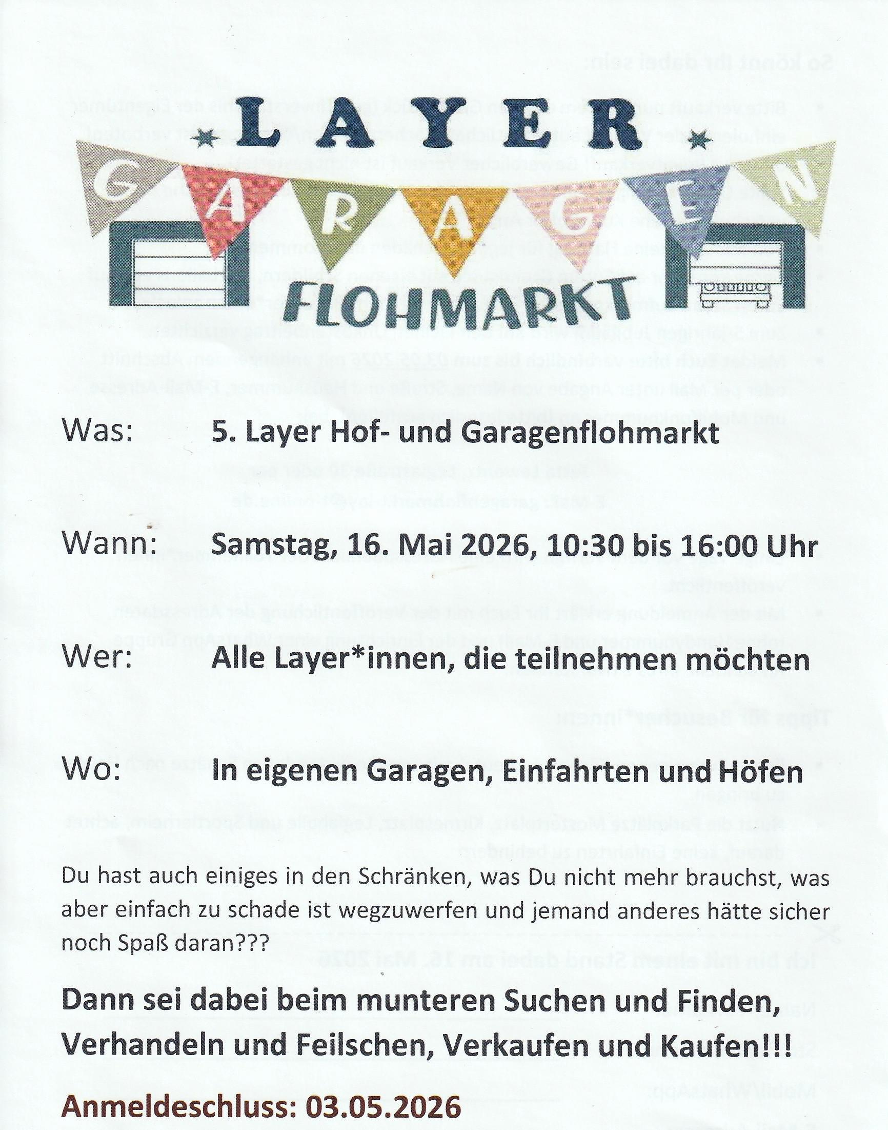 5. Layer Hof- und Garagenflohmarkt am 16.05.