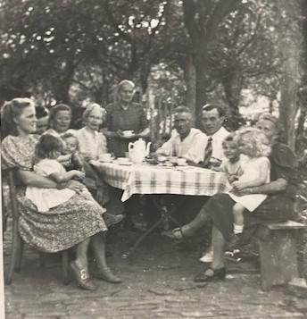 Uroma ca.1950 - So könnte eine Namenstagskaffeetafel im Hof ausgesehen haben