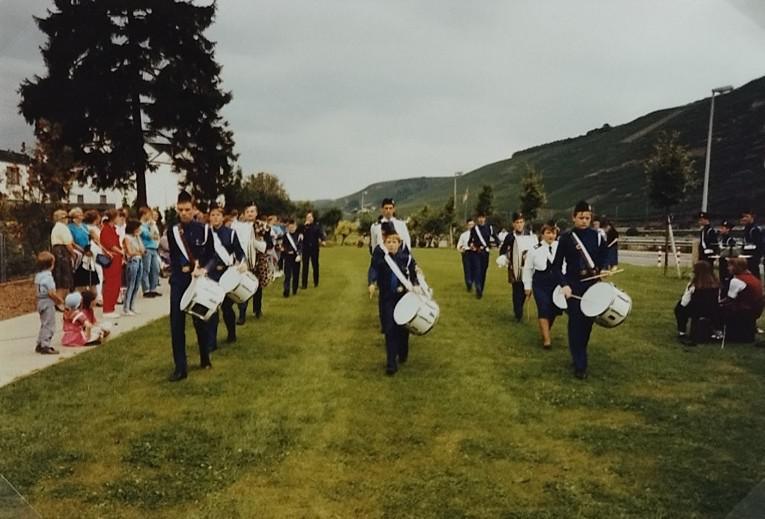 Eine Einheit der Boys Brigade bei einer Parade am Moselvorgelände (August 1987)