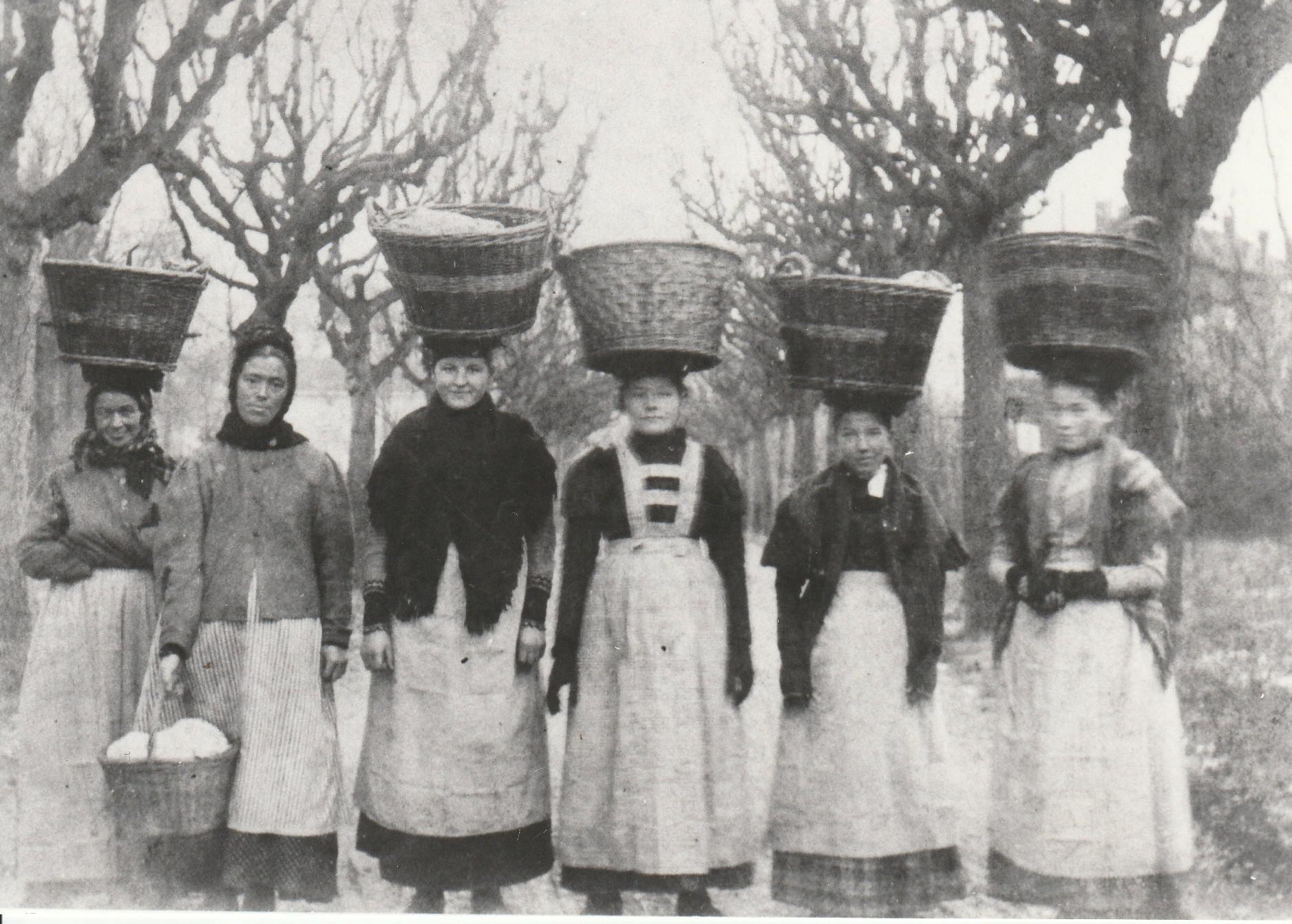 Essensträgerinnen zur Königsbach, 2. von re. Schwester von J. Thillmann, heiratete Philipp Roerig, Fuhrmann bei der Königsbach.