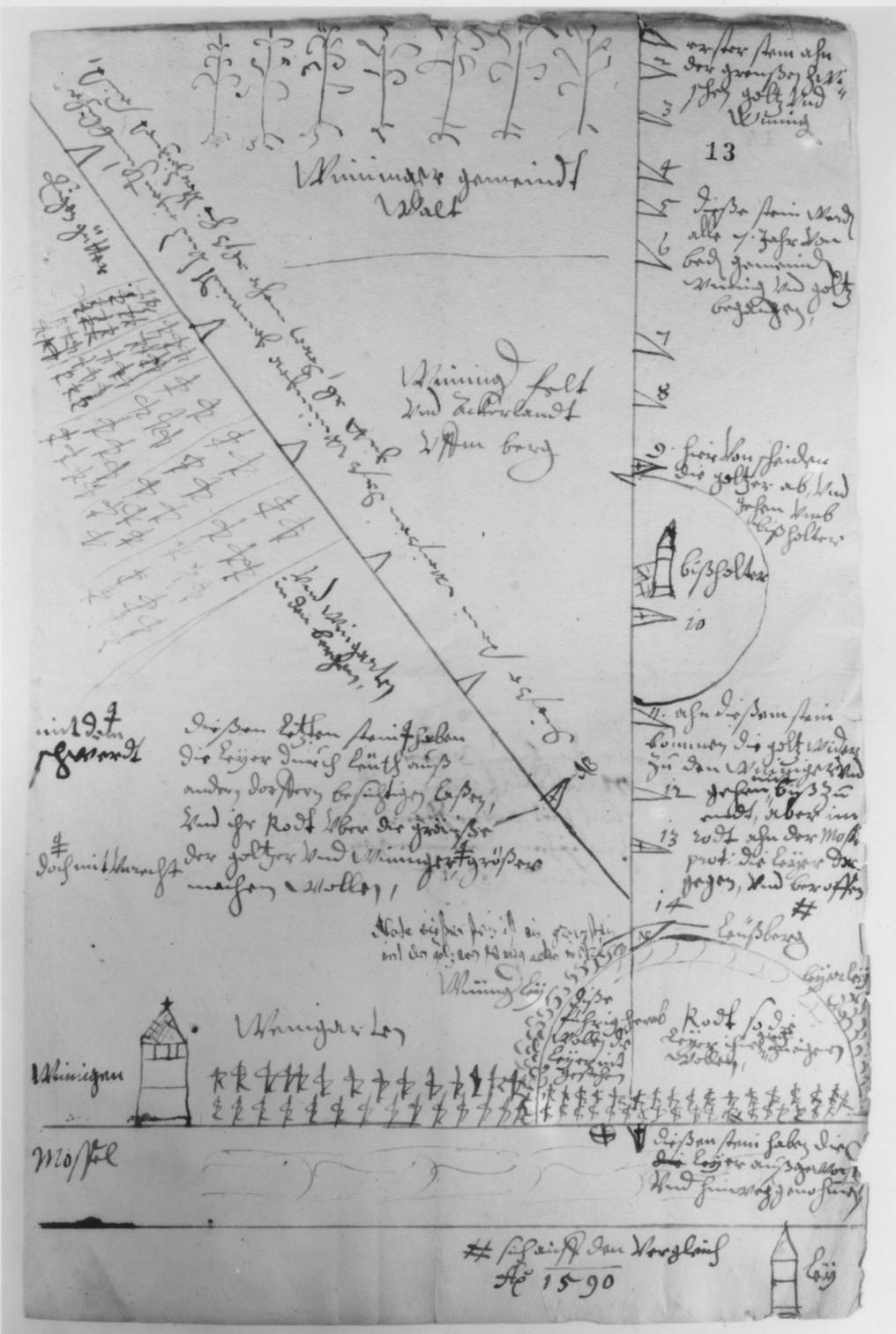 Skizze der Gemarkungsgrenze zwischen Winningen und Güls im Röttgen um 1660; LHA Koblenz, 33 Nr. 3984