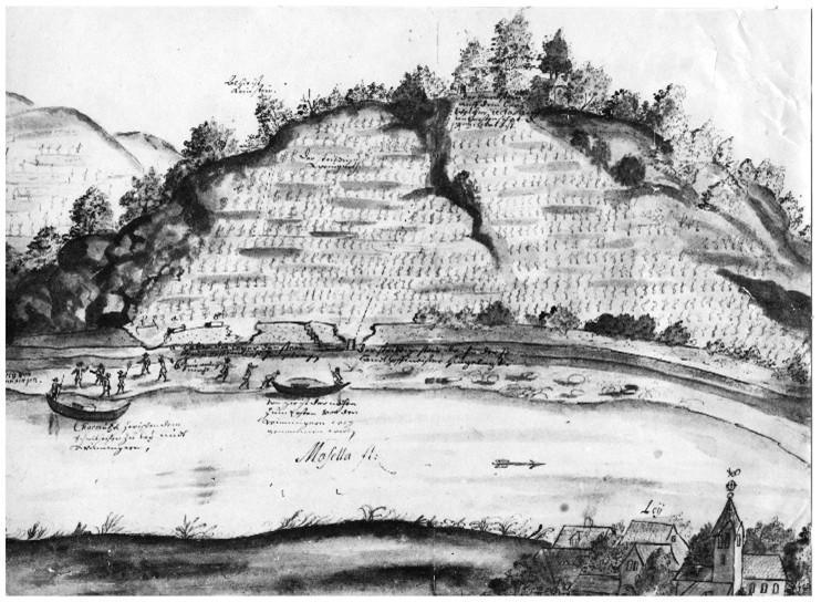 Aber auch nach dieser eindeutigen Zuordnung der Weinberge im Roth blieb die amtliche Grenze zwischen Winningen und Lay strittig und der Grenzstein an der Mosel wurde wiederholt von den Layern ausgerissen. Für klare Verhältnisse sorgten erst die Franzosen. Nach dem Frieden von Lunéville 1801wurde die gesamte Region links des Rhein völkerrechtlich frz. Staatsgebiet. In der Folge wurden die geistlichen und weltlichen Güter aufgehoben, ihr Besitz vom frz. Staat einzogen und versteigert. Die Weinberge im Roth bekamen überwiegend neue Eigentümer.