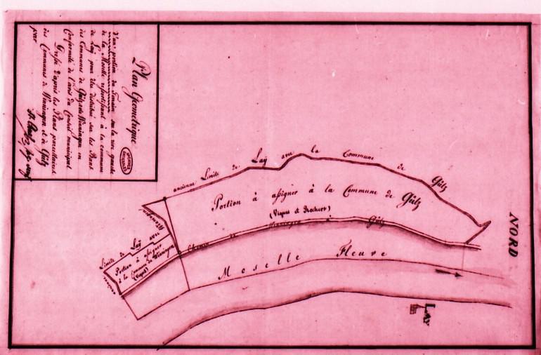 1809 legte die frz. Verwaltung erstmals ein Grundstückskataster an und ordnete die Gemeindegrenzen neu. Die Grenze zwischen Lay und Winningen und auch Güls verlief nun in der Flussmitte der Mosel und dies blieb so bis heute. Die zu Lay gehörende Gemarkung links der Mosel wurde zwischen Winningen und Güls geteilt. Auch eine Beschwerde der Gemeinde Lay änderte daran nichts. Der ’Plan Geometrique’ aus dem Jahr 1811 zeigt anschaulich die ehemalige Gemarkung Lay und links die senkrecht zur Mosel verlaufende neue Grenzlinie zwischen dem kleinen Winninger Anteil und dem wesentlich größeren Gülser Anteil, der bis zum Layer Fels reichte.