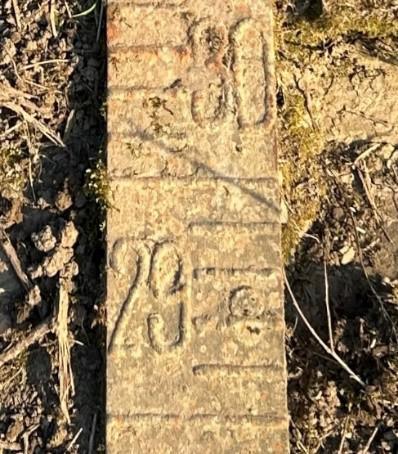 Der freigelegte Pegel. Sein Fußpunkt dürfte sich deutlich unter der noch sichtbaren Messzahl „28“ befinden, denn vor dem Ausbau zur Schifffahrtsstraße lag hier der Wasserspiegel der Mosel im Mittel tiefer als heute. Die Flusspegel waren aber grundsätzlich so angelegt, dass der Wasserstand auch bei Niedrigwasser messbar und ablesbar war.